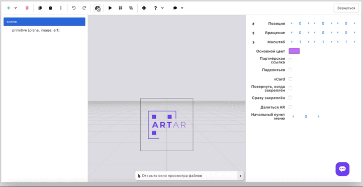1. Image. Format: .png, .jpg/.jpeg. Max size: 1 MB. 2. Video. Format: .mp4, .webm. Max size: 10 MB. 3. 3D model. Format: .glb (gltf-binary). Max size: 4 MB. 4. Audio. Format: .mp3. Max size: 2 MB. Use converters and compress files if your source files are not supported. For example, a file in gif format is not supported, but it can easily be converted to mp4 on third-party services, and our editor has a "like gif" feature that can be enabled for a video file. Try to minimize the scene size as much as possible for faster loading. Remember that internet speed and device performance vary for everyone. Image requirements for tracking. Good detail is required: rich texture or a large number of corners. The picture must match the printed one (the one onto which AR will be overlaid). It is not recommended to send images via social networks or save them as JPEG – details are lost and noise is added during conversion. Do not use images with a transparent background. Format: .png, .jpg/.jpeg. Max size: 20 MB.