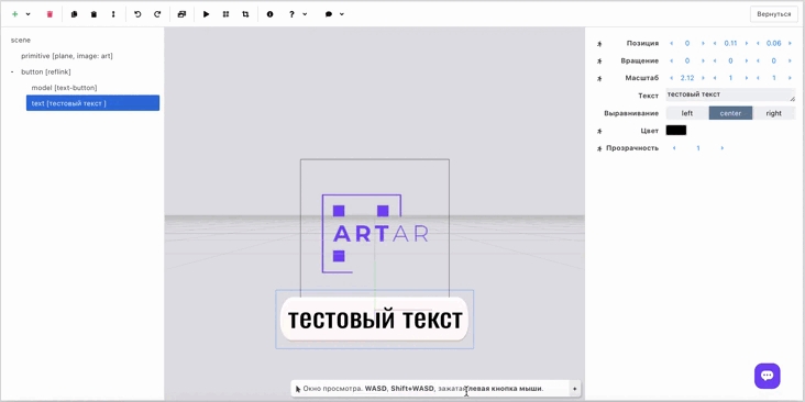 You can view the created project in the browser window (without AR). If the created project did not open, refresh the page.