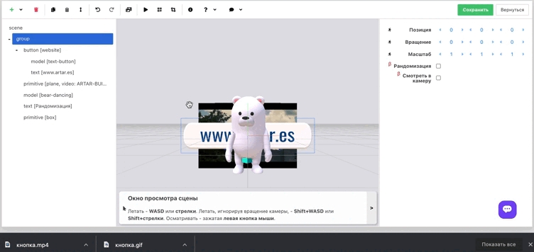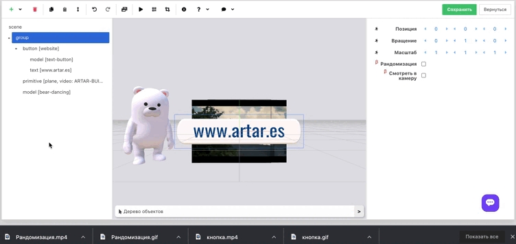 Two unique functions are implemented in the group: - randomization; - look at camera.